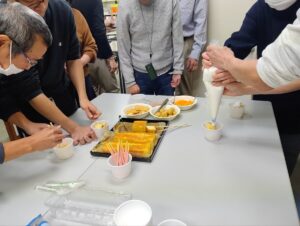 それぞれに色んな材料をカップに入れて自分だけのケーキを作り食べました。
