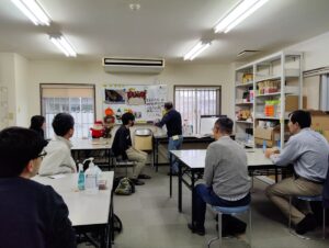 自然災害以外に今年は下水道災害やモバイルバッテリーでの火災、目に見えない事故が多かったなどの話も出ました。話し合ってる途中で皆で簡単な運動ストレッチをしました。長い時間座ってると身体が固まってくるので身体を少し動かして気分転換につながりました。